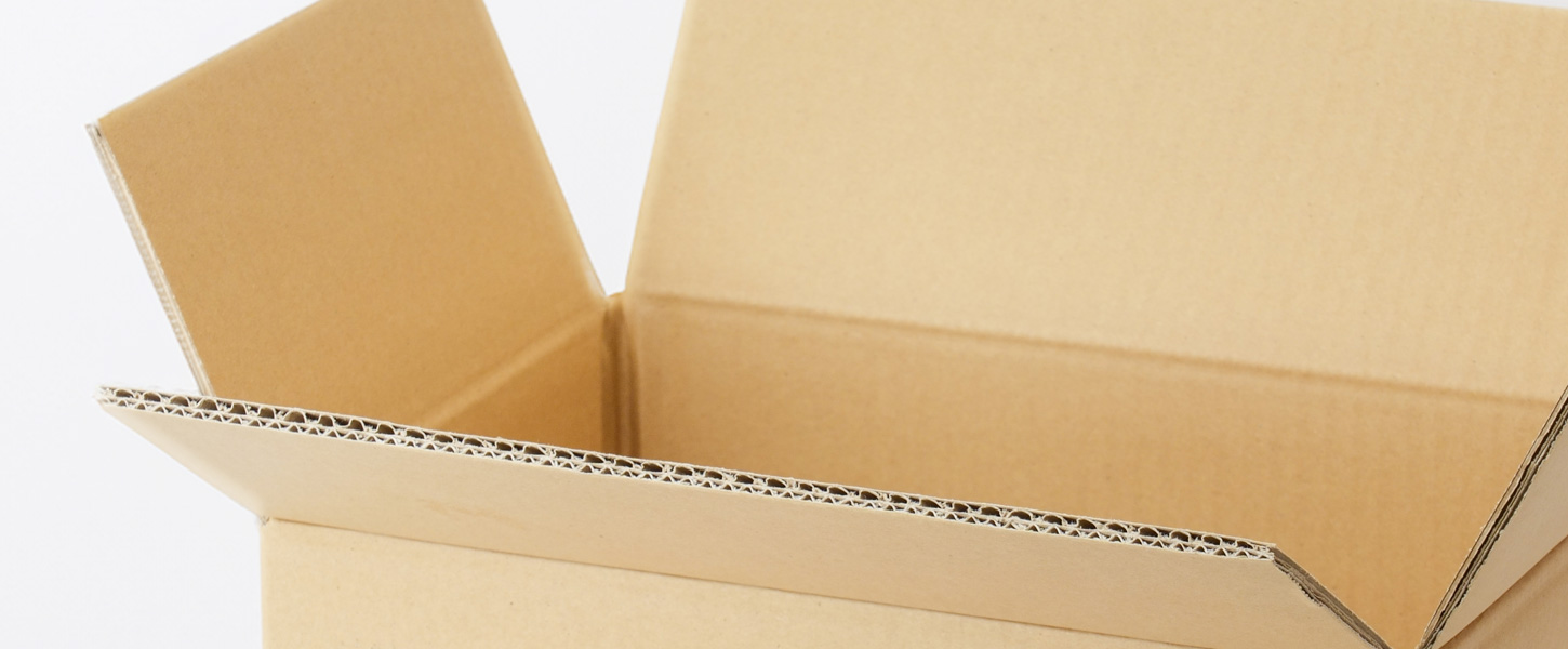ABOUT A式は最も一般的な段ボール箱の形式で、「みかん箱」とも呼ばれます。長さ面・幅面の4面からフラップ(蓋)が伸び、すべて同じ長さです。長さ面のフラップを中央で突き合わせ、テープで封緘するシンプルな構造が特徴です。紙の無駄が少なく、製造コストも低いため、寸法指定のオーダーメイドでも初期コストなしで製作可能です。